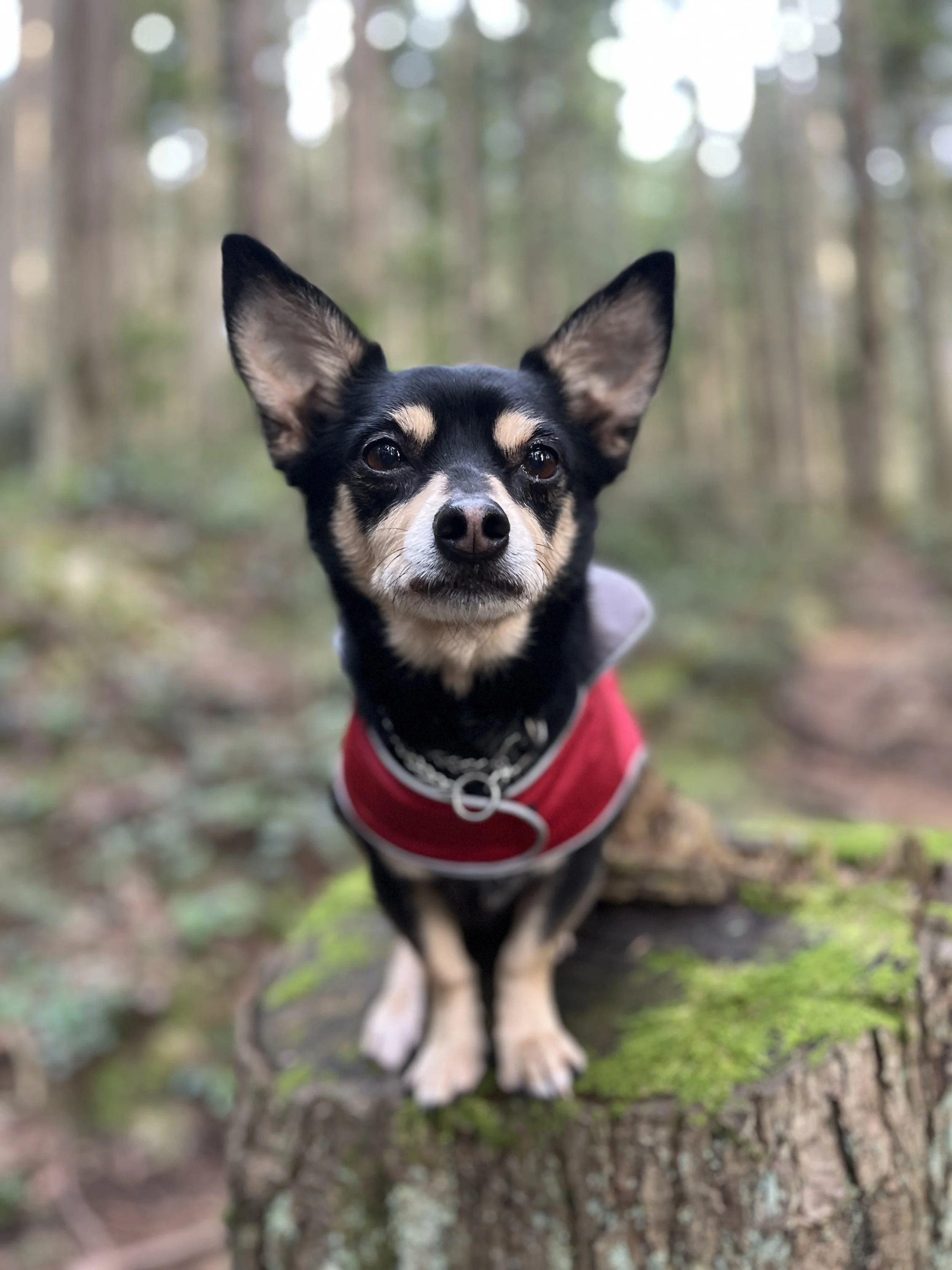 Travi is a young boy (under 10 lbs) with a huge love for routine and adventure. He absolutely lights up when the leash comes out and has developed a beautiful heel. Walks are his happy place, and he thrives when he knows what’s expected of him.